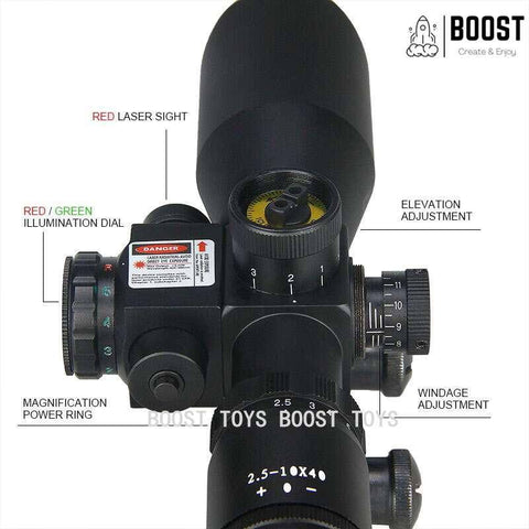 S05- 2.5-10x40ER Aluminum Scope With Red Laser